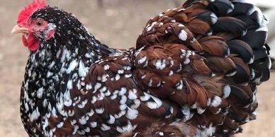 The Jubilee Orpington is a rare, beautiful, and friendly dual-purpose chicken breed, developed in 1897 for Queen Victoria's Diamond Jubilee, featuring striking mahogany feathers with black spangles and white tips, known for calm temperaments, good egg-laying, and suitability for beginners and families. Its complex plumage takes up to 18 months to fully develop, and it's a heavy, cold-hardy bird prized for both meat and eggs.